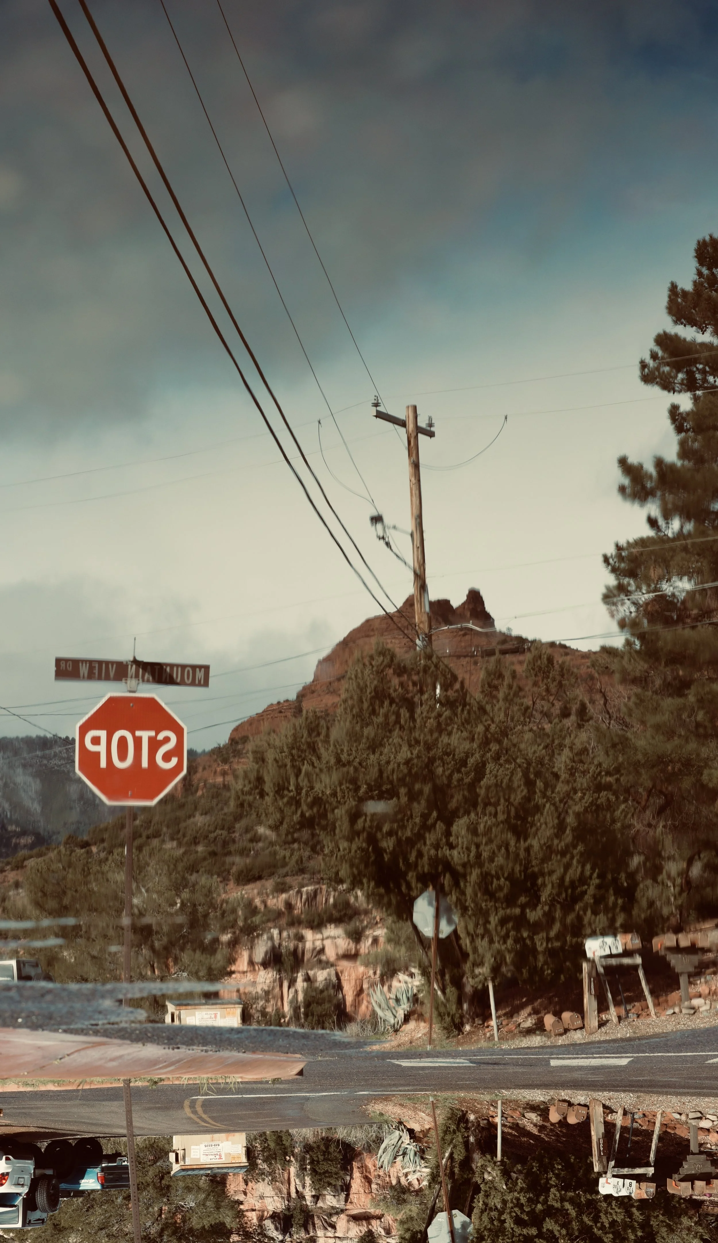 Driving through these petrified mounds as the clouds break and light is shed into the landscape. unaware of the reflection staring back at me, the sky so different as if the light is shining from the ground up.