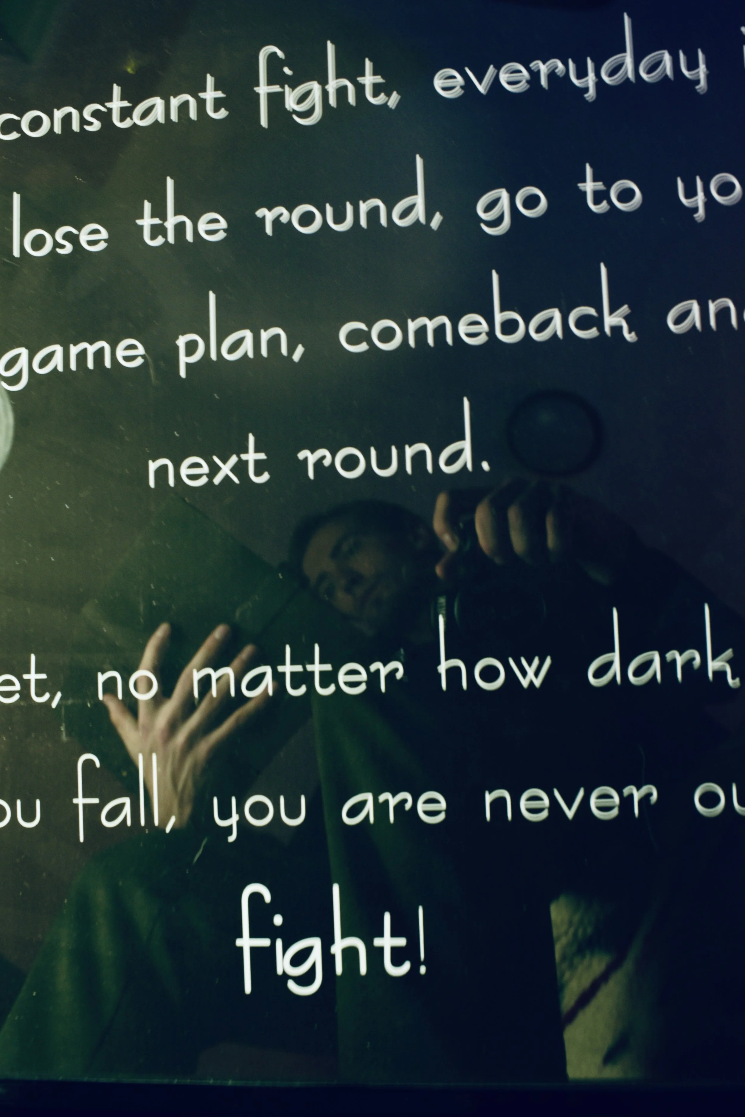 I am always looking for ways to inspire my creativity, reading quotes, journaling, and leaving notes for my future self. Inside this photo is creativity being captured, this photo reminds me of the consistency of life. A life that by itself is much like a fight, you win some you lose some, but you always have the chance to regroup and change up your strategy after each round. Will you take advantage of this opportunity, or will you let it pass you by as you get called into the next round?